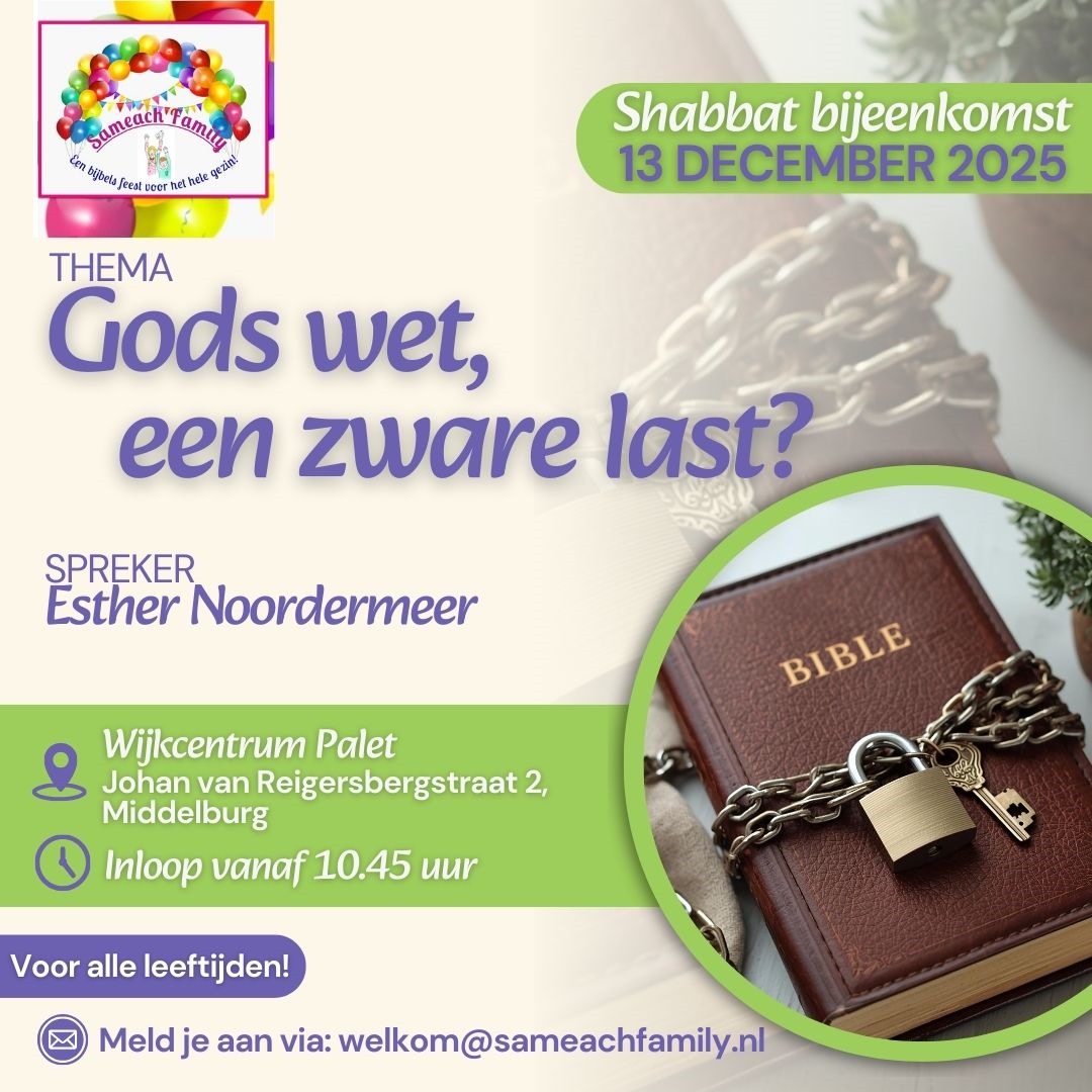 Hieronder vinden jullie de data van de maandelijkse shabbat bijeenkomsten voor de komende tijd. Flyers incl. thema van de bijeenkomst zijn onder deze lijst te vinden: